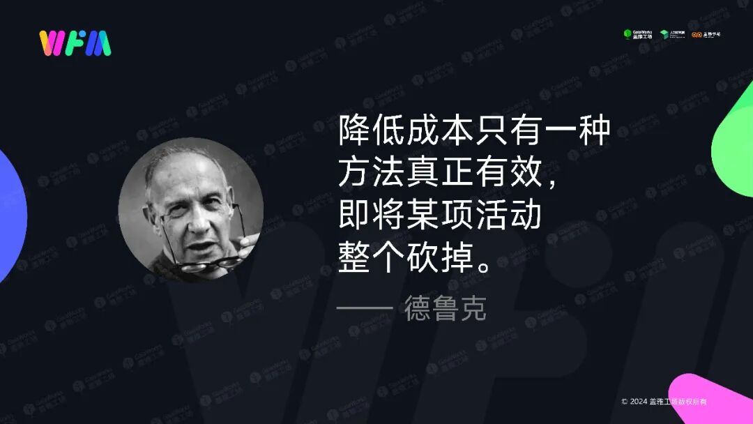 德鲁克先生1985年写了一本书叫《为成果而管理》,这本书把降本增效讲得非常透彻,在书里他讲了一句话,即成本只有一种,就是把活动给砍掉。因为砍掉某项活动效率就必然会提升,效率提升必然会降本,但是降本不一定会增效,降本的前提是要找到那个活动。未经审视的乱砍成本,直接砍下去可能就砍到了大动脉,本来可以赚钱获利的事情,因为降本反而盈利下降了,所以一定要理清楚要降的是什么本。