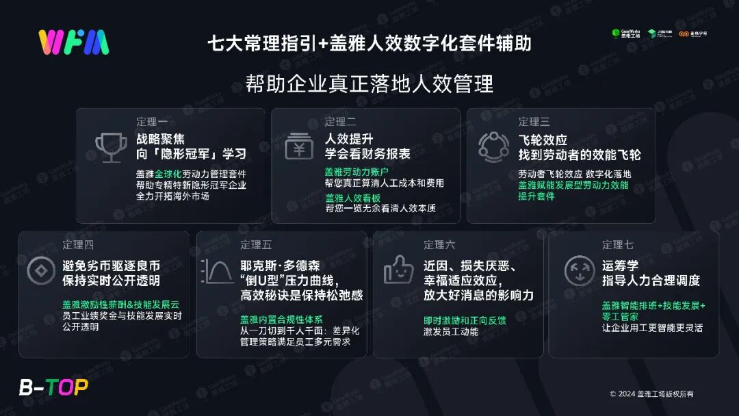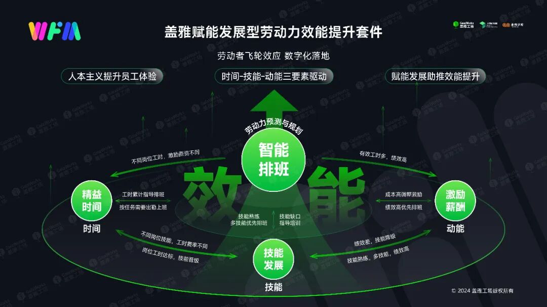 基于飞轮效应,我们也形成了劳动力管理的解决方案,即盖雅赋能发展型劳动力效能提升套件。我们希望把员工的时间、技能和动能通过数字化的方式落地下来,帮助企业的人效飞轮真正地转起来。