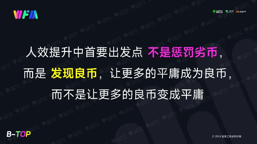 这实际是过去做人效管理时非常大的误区,导致大家相互对抗。人效提升的首要出发点不是惩罚劣币,而是去发现良币,我们应该让更多的庸币变成良币,而不是让更多的良币变得平庸。
