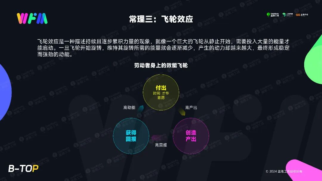 当有高产出时,如果获得的回报不够,效能飞轮也会断掉,高回报才会产生高动能,有了高动能又会付出更多,高动能、高产出、高回报,效能飞轮才会运转起来。