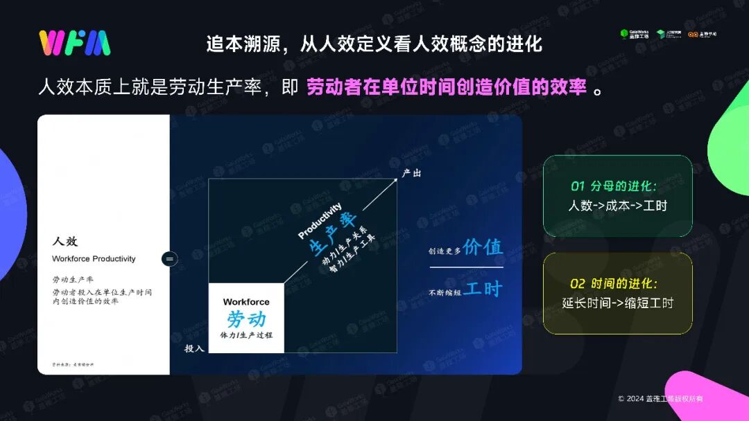 这个定义又发生了两个变化。一是分母的变化,过去提人效都是人均多少,实际上在泰特时代,分母用的是工时,用工时衡量效率是最客观的状况。