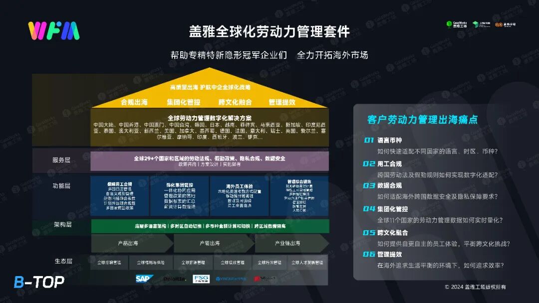 盖雅的战略选择就是做全球化的劳动力管理套件,帮助专精特新的隐形冠军企业全力开拓海外市场。