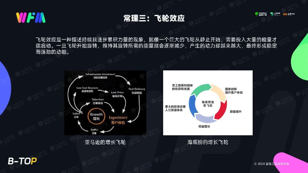 飞轮效应也是一个常理,最早亚马逊提出来,他们认为只要客户体验好,客户体验越好流量就越多,流量越多卖家也会越多,卖家越多就能提供更多的产品,产品越多客户体验就会越好,然后飞轮就自动转起来了,所以我们要把大量的精力聚焦在如何让我们的客户体验更好。